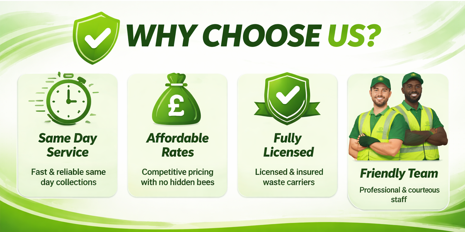 Most properties in London don’t have enough space to store large amounts of waste, especially after cleaning, moving, or renovations. That’s why regular and quick rubbish removal is needed to keep things organised and clutter-free.